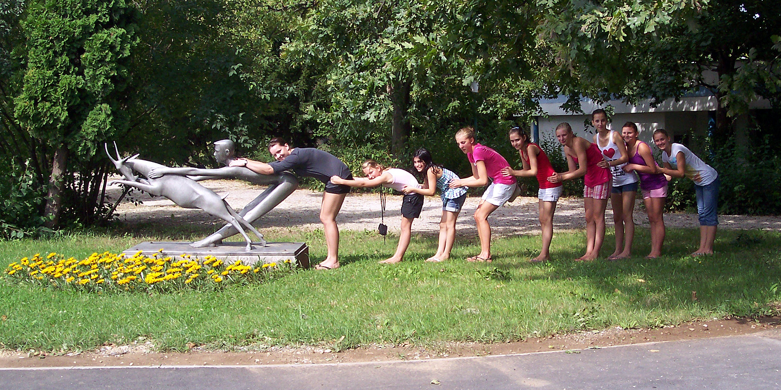 Im August 2010, während der Schulferien, organisierten wir, die Leistungsgruppe, eine Sommerfahrt. Unser Ziel war die Stadt Veszprém in Ungarn, wo wir über Eszter Kontakte zum örtlichen Turnverein geknüpft haben. Die Sporthalle dort entsprach den höchsten Ansprüchen und gab unserem Training viele Möglichkeiten, die wir in unserer Halle in Porz nicht haben. Wir hatten eine richtige Bodenfläche, eine Spiegelwand, eine gefederte Akrobahn, eine Tumblingbahn sowie zwei große Trampoline zur Verfügung. Wir planten deswegen für diese Fahrt sowohl ein intensives Training wie auch interessante Freizeitaktivitäten.