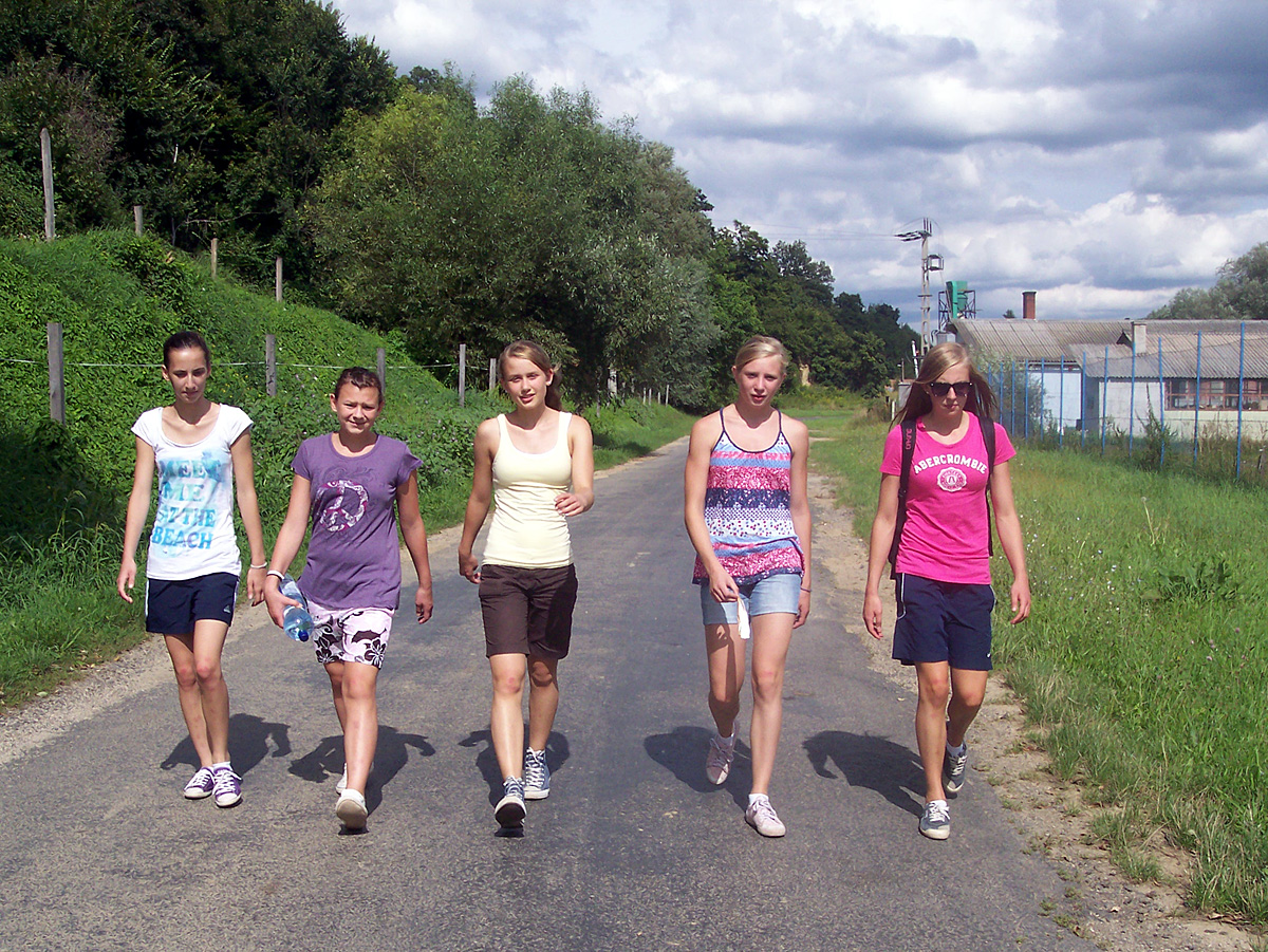 Am nächsten Tag wollten wir eine "Schnitzeljagd" machen. Kalina und Eszter verschwanden am Sonntag deswegen für einige Zeit und suchten im Wald geeignete Stellen für die verschiedenen Aufgaben. Am Montag kurz nach der Mittagszeit war es so weit. Als die Mädchen eine Ruhepause nach dem Training hatten, gingen Karo und Eszter wieder in den Wald und ließen kleine Nachrichten an verschiedenen Orten zurück. Am Ende versteckten sich die Beiden und warteten (eine sehr lange Zeit, sie haben fast Sonnenbrand bekommen) bis die Mädchen sie fanden. Kalina ging zusammen mit der Gruppe und beobachtete, wie sie die Aufgaben lösten.