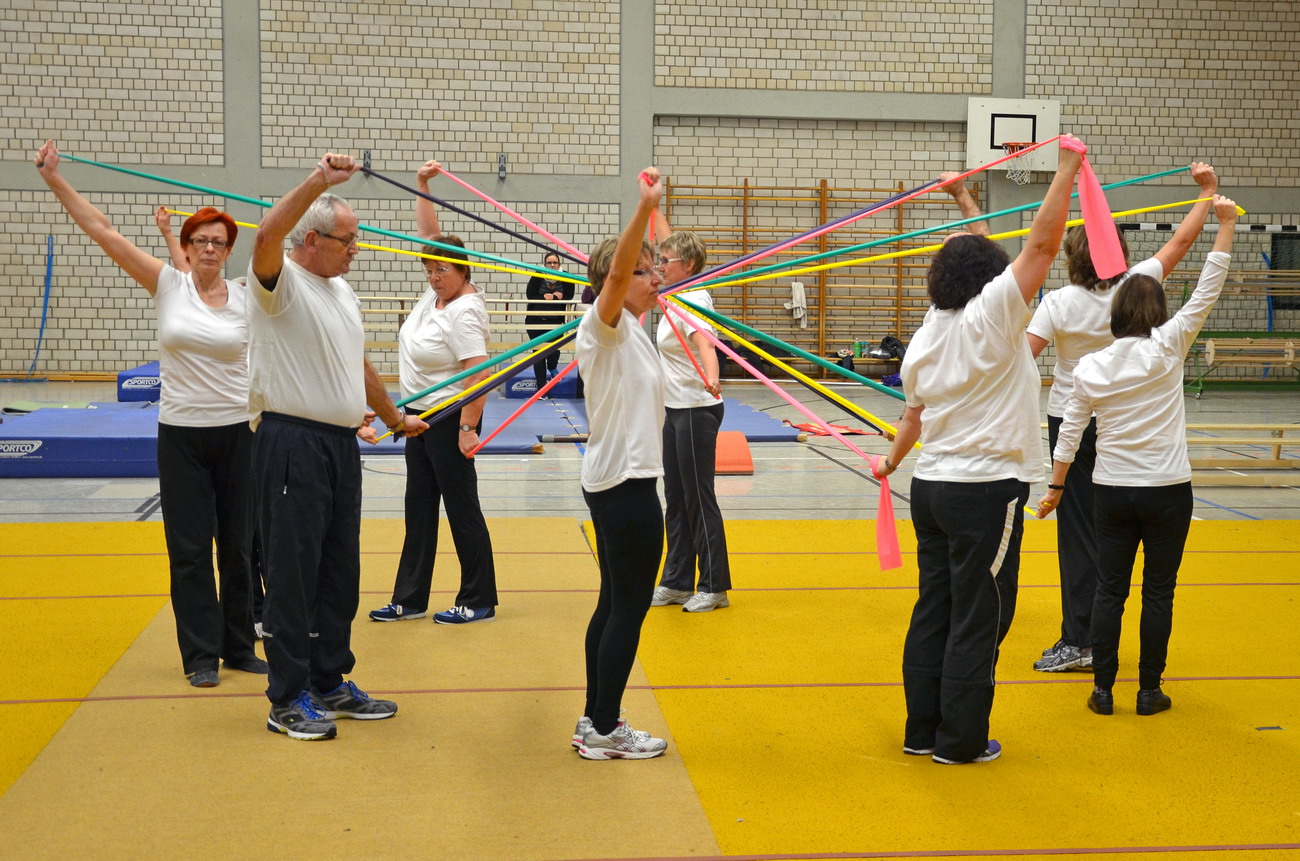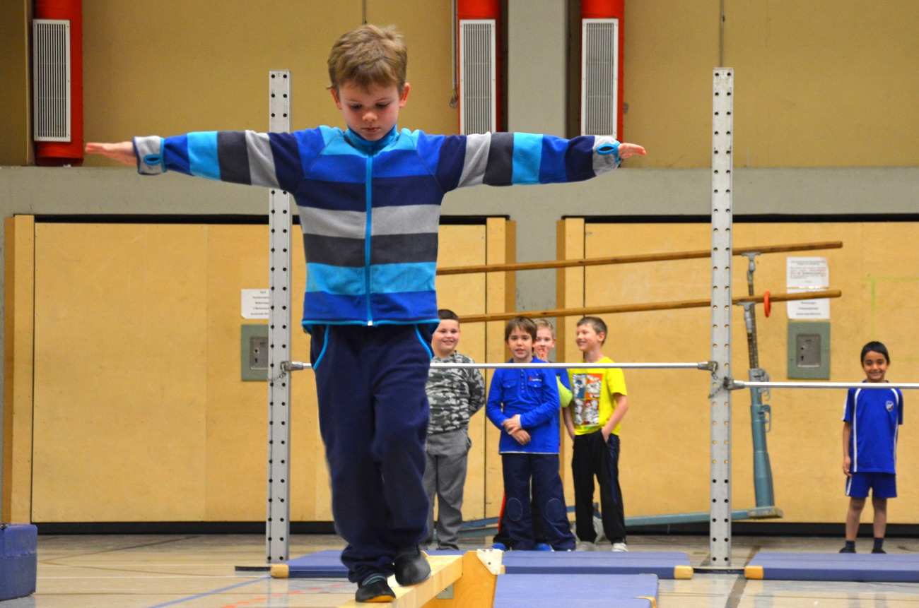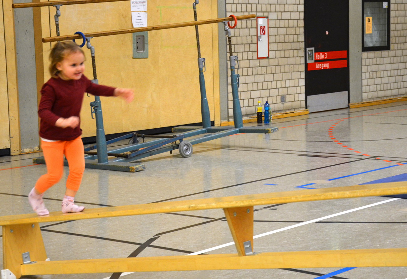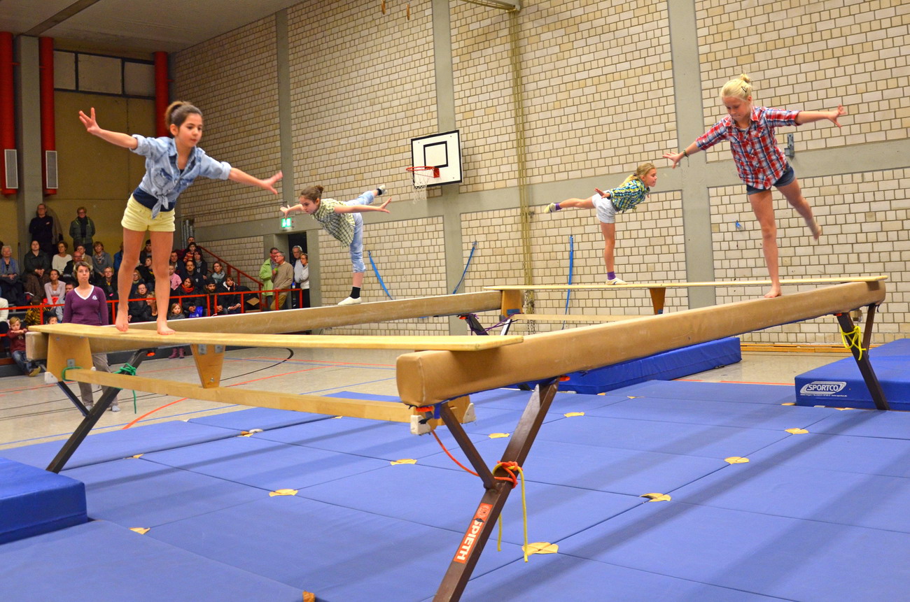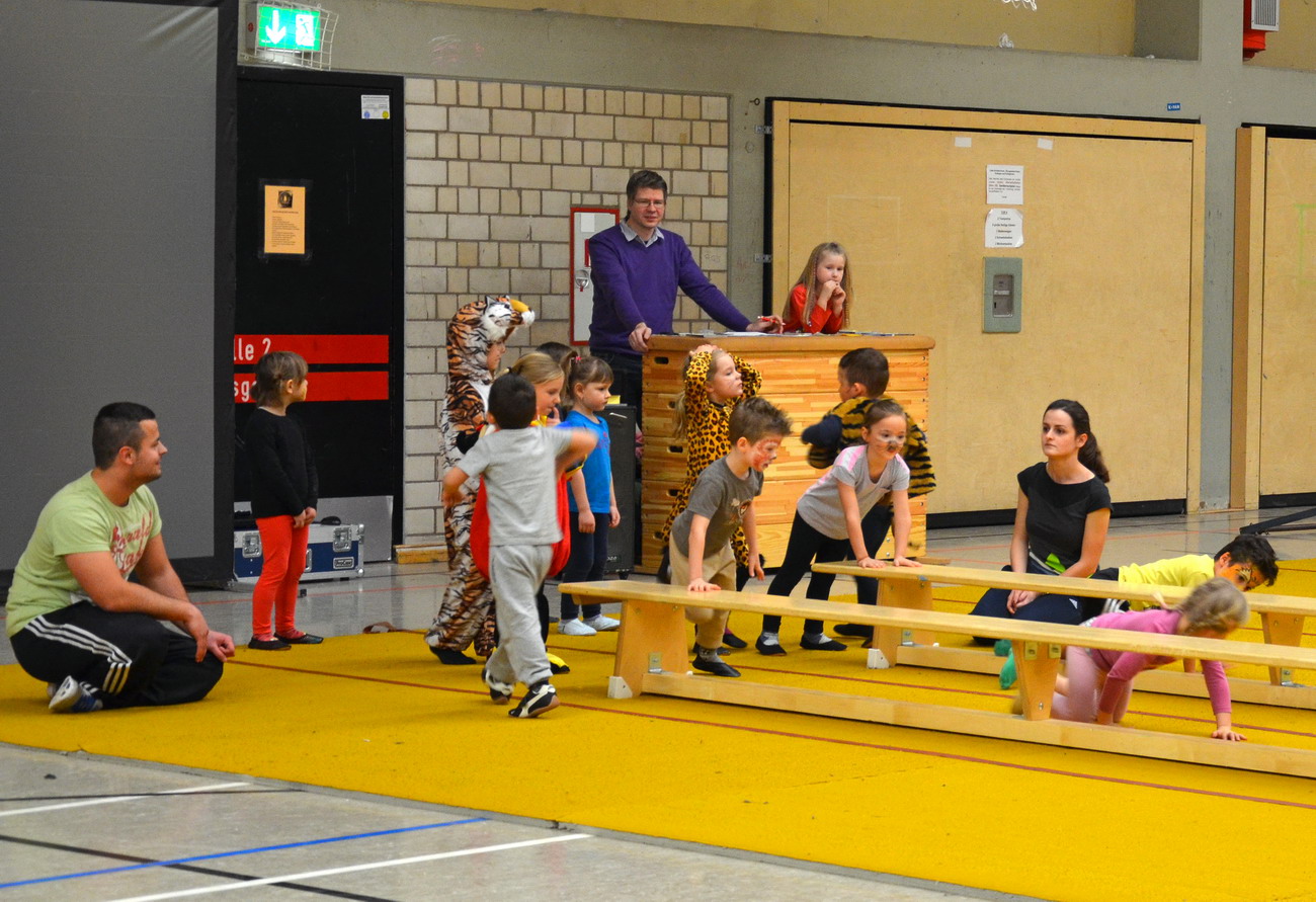 Die aktiven Sportlerinnen und Sportler von ganz klein (2 Jahre) bis ganz groß (78 Jahre) zeigten ein tolles und unterhaltsames Programm ihres Könnens. Das Überwinden eines Hindernisparcours gehörte genauso dazu, wie anspruchsvolle Übungen am Boden und am Schwebebalken, über Koordinationsspiele mit Bällen bis hin zur Tanzdarbietung nach Zumba-Art und Qi Gong. Die Stimmung war großartig, das Publikum mit über 200 Zuschauern klatschte im Takt der Lieder fleißig mit und spendete den Akteuren großen Beifall.