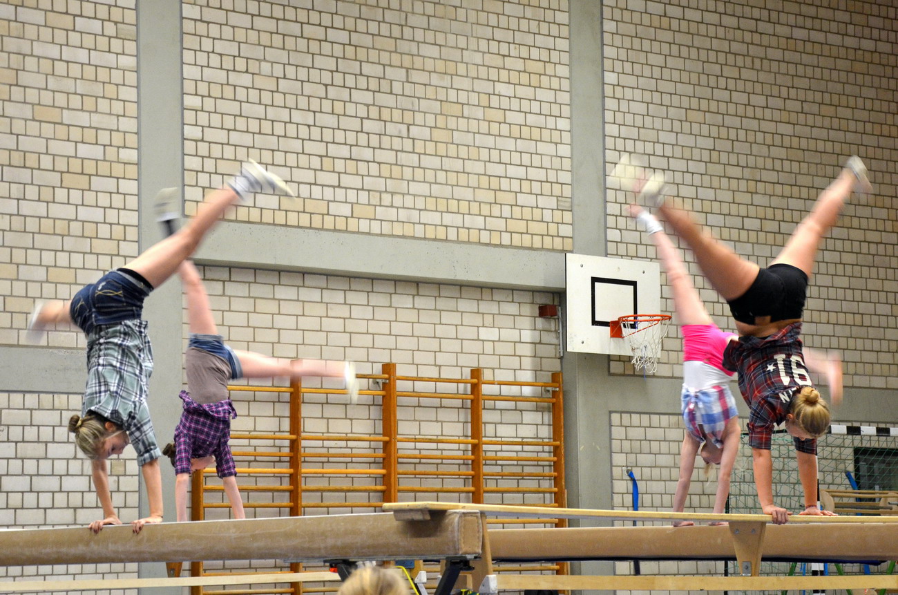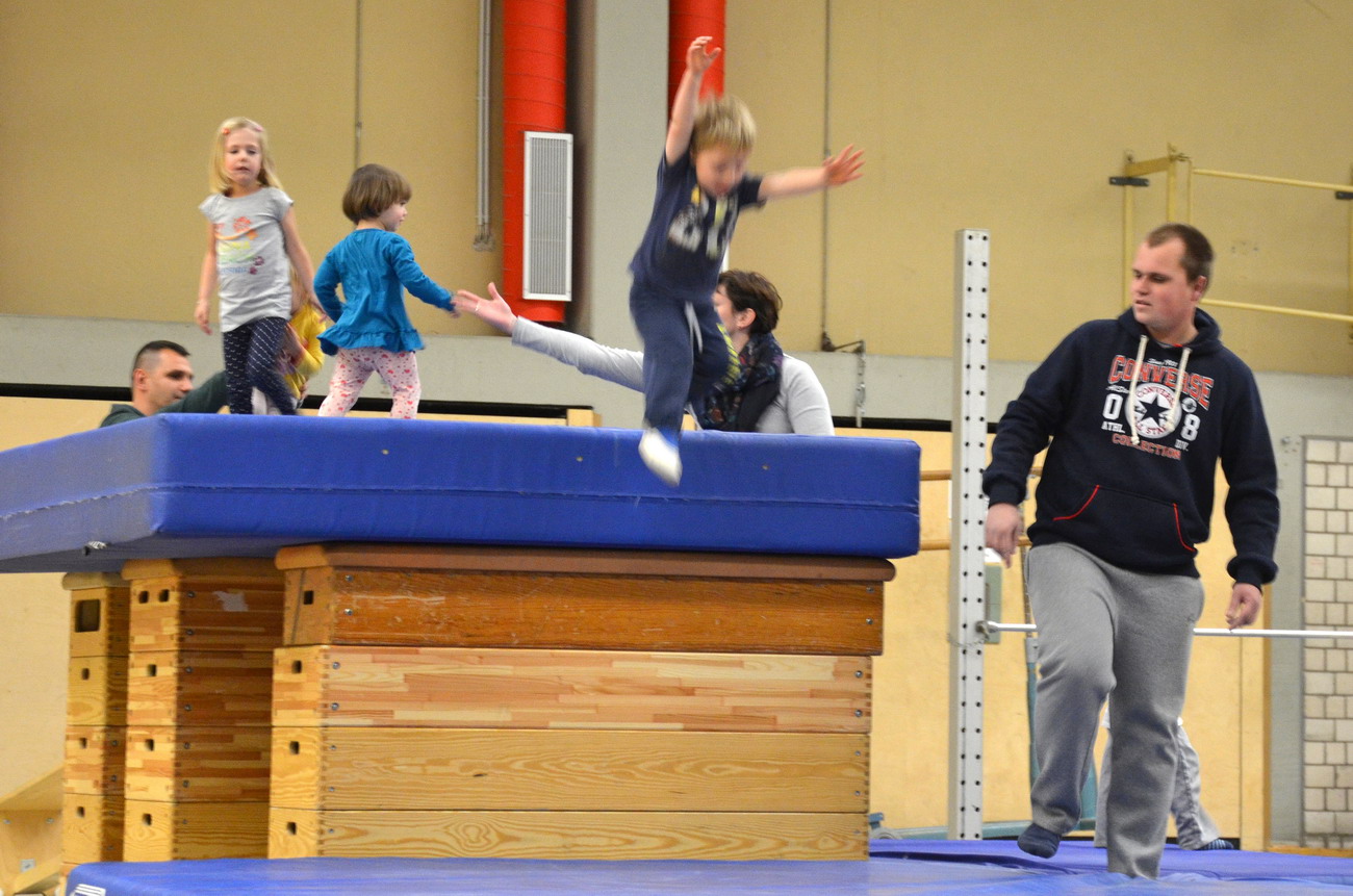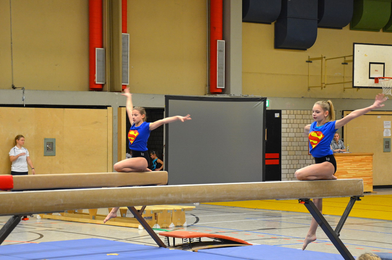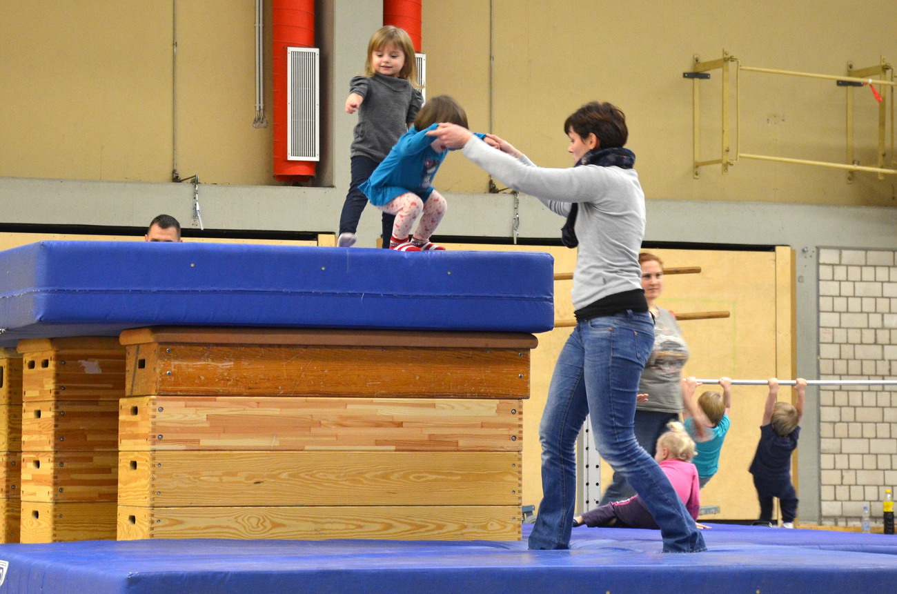 Die aktiven Sportlerinnen und Sportler von ganz klein (2 Jahre) bis ganz groß (78 Jahre) zeigten ein tolles und unterhaltsames Programm ihres Könnens. Das Überwinden eines Hindernisparcours gehörte genauso dazu, wie anspruchsvolle Übungen am Boden und am Schwebebalken, über Koordinationsspiele mit Bällen bis hin zur Tanzdarbietung nach Zumba-Art und Qi Gong. Die Stimmung war großartig, das Publikum mit über 200 Zuschauern klatschte im Takt der Lieder fleißig mit und spendete den Akteuren großen Beifall.