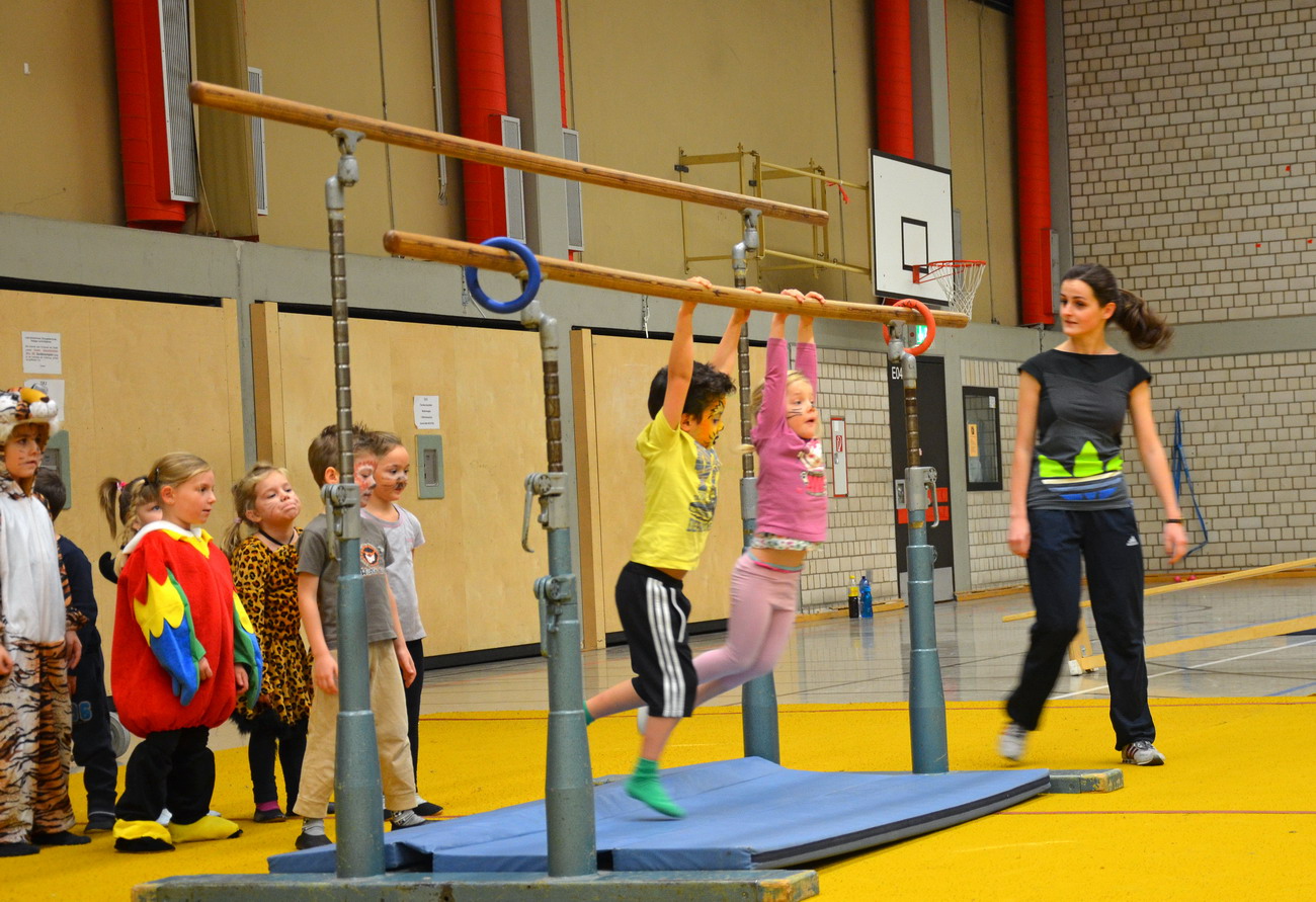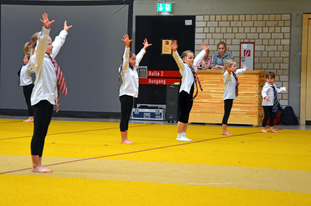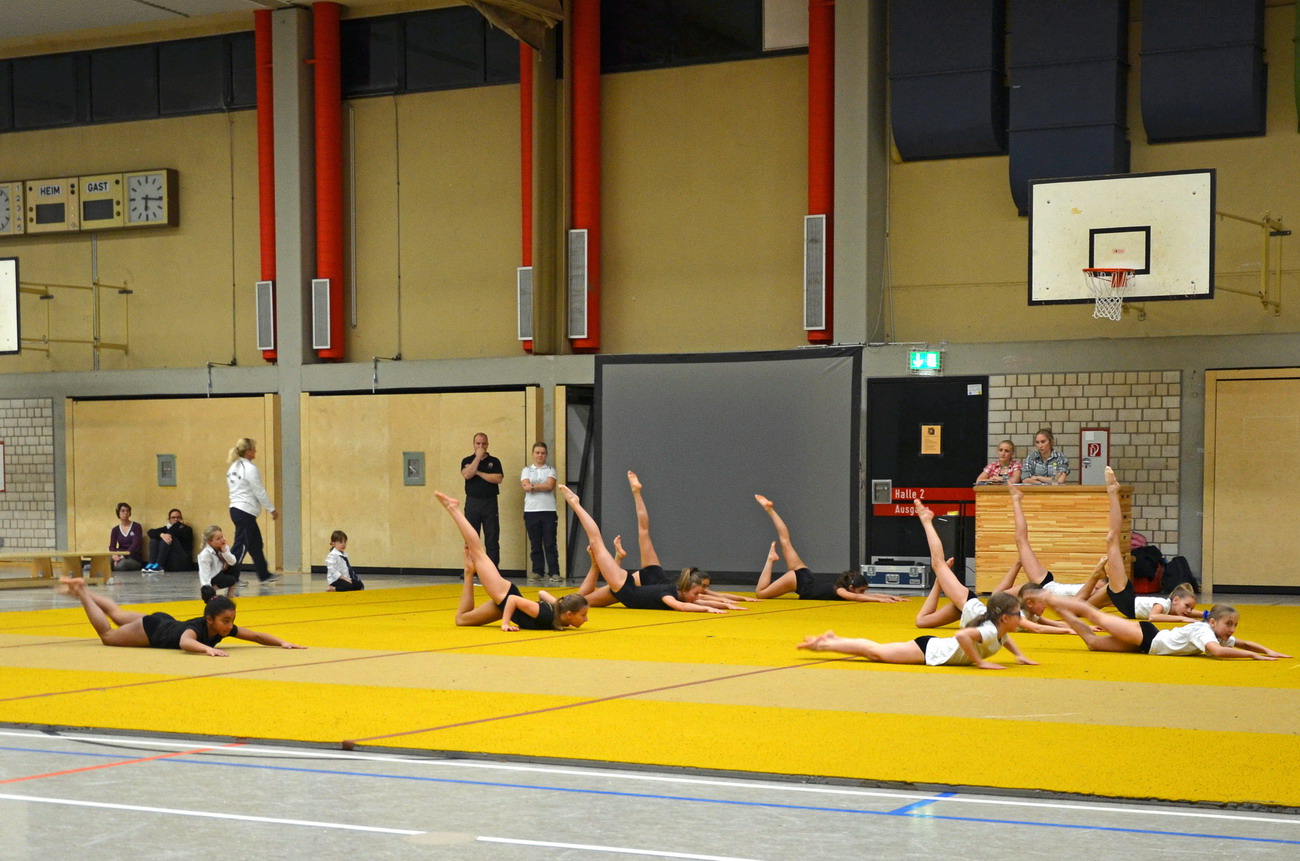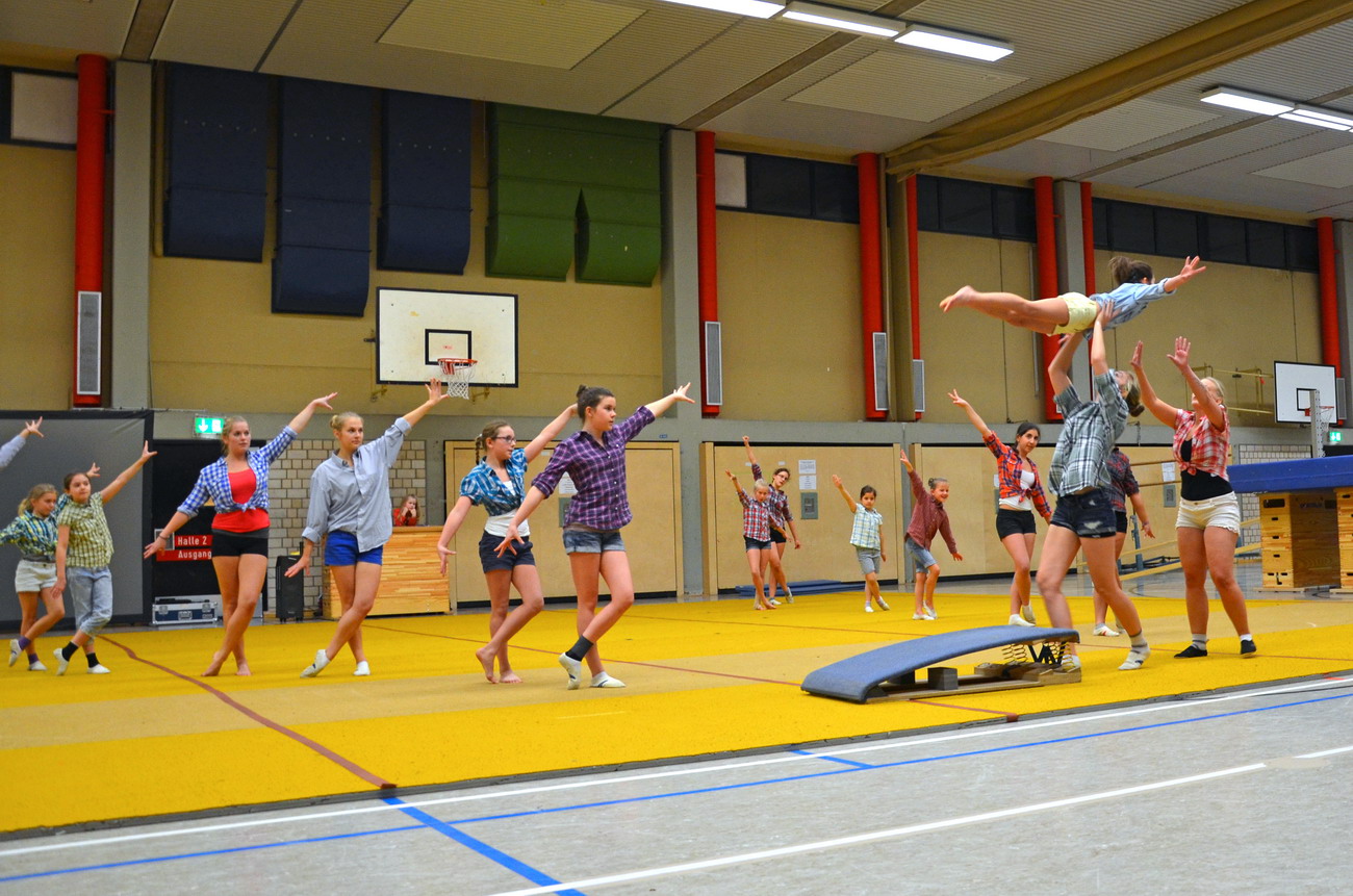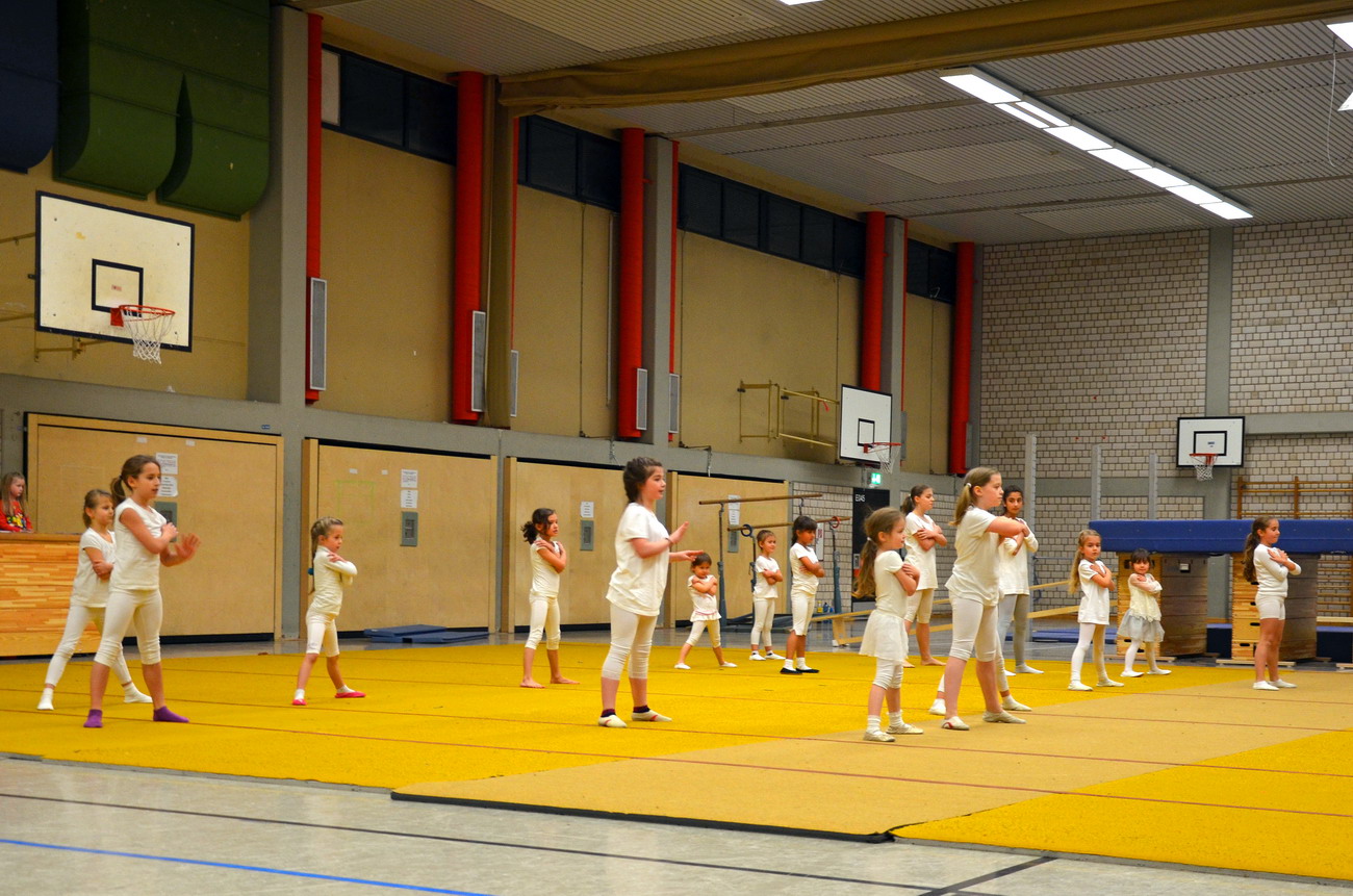 Reges Treiben und viele abwechslungsreiche Darbietungen der einzelnen Abteilungen sorgten bei der zweistündigen Veranstaltung in der Turnhalle des Schulzentrums in Porz-Zündorf für ein kurzweiliges Programm. Das Motto unseres Schauturnens lautete dieses Mal “Filmmusik” aus Disneyfilmen und anderen Hollywood-Klassikern.