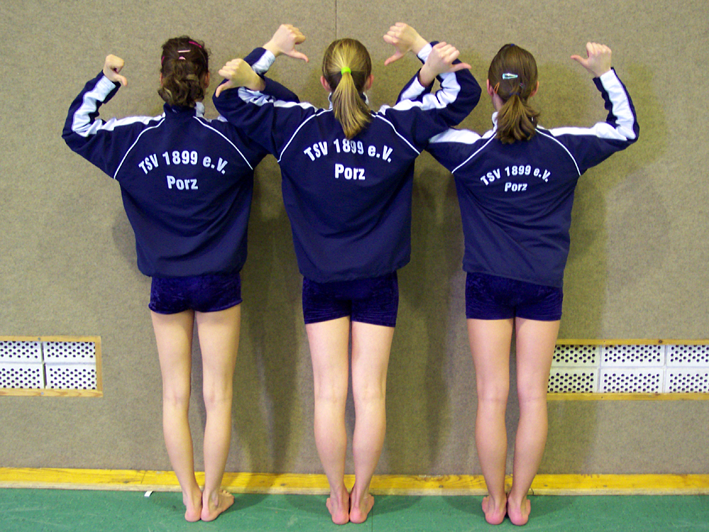 Bei den Turnerinnen der Jahrgänge 1995/94 waren drei Mädchen aus Porz am Start - Anne Klein, Michelle Blum und Sandra Höfermann.